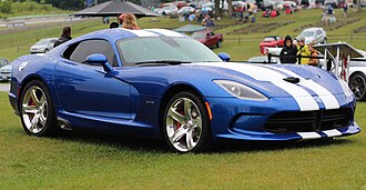 2014 SRT Viper TA (Time Attack) package is a limited (33 units) version of SRT Viper coupe with Pirelli P Zero Corsa tires, matte black Sidewinder II wheels, two-mode Bilstein Damptronic suspension with firmer levels of damping and a smaller spread between modes than SRT Viper GTS; shock dampers, springs and road racing derived stabilizer bars retuned for optimal on-track performance; aluminum structural X-brace replaced by a lighter carbon fiber brace, brake calipers in black anodized finish with the Viper logo in Crusher Orange, Crusher Orange body colour with black 2D TA logos behind both front wheels, black Stryker logo on the front fascia, black interior with Crusher Orange accent stitching on the cloth seats, instrument panel (through the cowl), center stack, console, pull brake, shifter boot, shifter head, steering wheel and upper doors. Top speed is 206 miles per hour (331.5 km/h). In March 18, 2013 MotorTrend tested the SRT Viper TA in Mazda Raceway Laguna Seca to set a lap time against the 1.33.70 lap time holder Chevrolet Corvette ZR1. The SRT Viper TA beat the lap time in 1.33.62 seconds using Corsa Tires. The SRT Viper TA beat the original time in 1.30.78 seconds using Slick Tires.