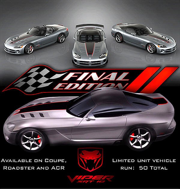 ’02: Only 8 ACR’s were built without A/C and Stereo Comfort Group. One special Blue/Silver ACR built for Viper Club of America raffle. There were 34 Final Edition GTS ACR’s built