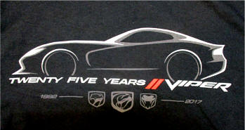 Includes the Viper 25th Anniversary logo. Available in black.