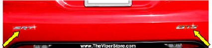 Rear bumper emblem set. Includes one chrome “SRT” and one chrome “GTS.” Easy peel-and-stick installation. These are the same emblems mounted on the fender by Dodge.