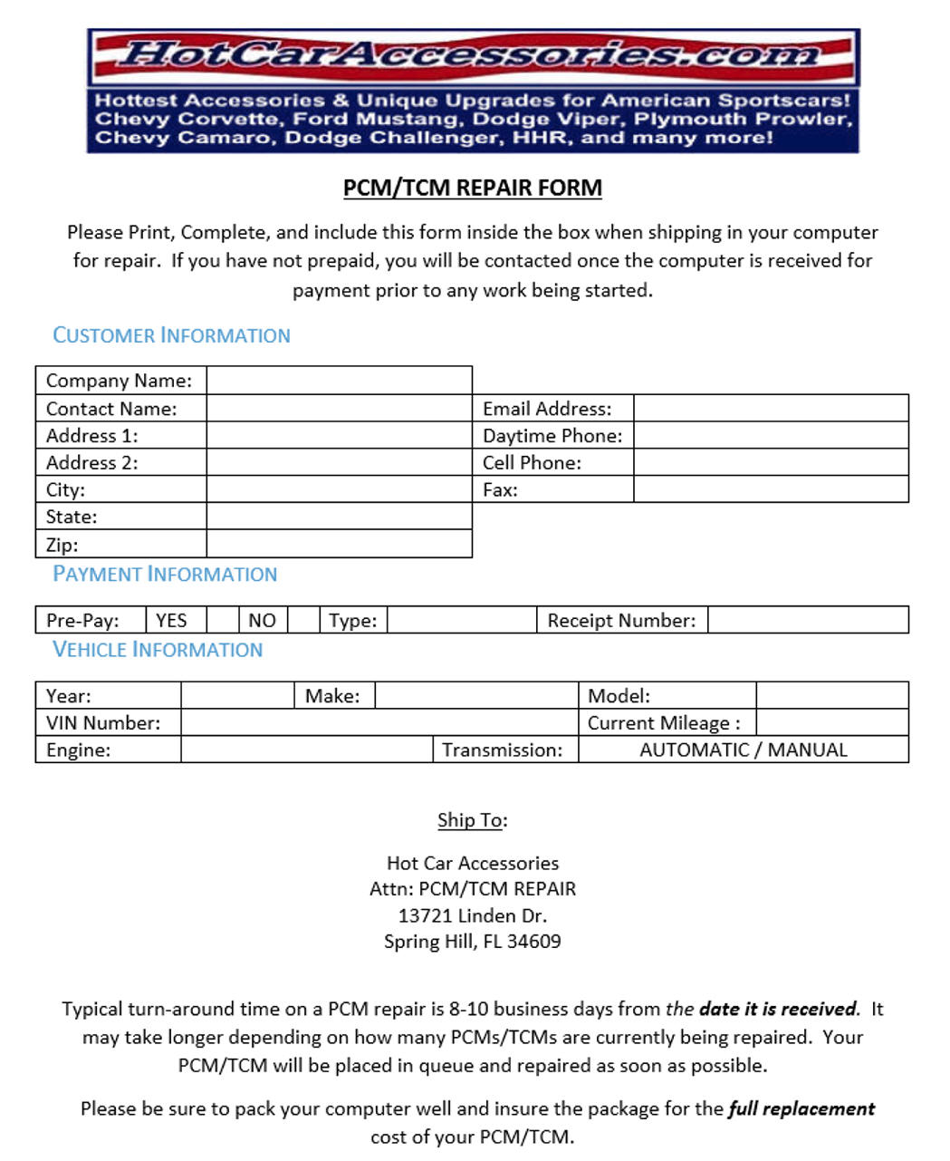 Print this form and tape it to your PCM. Ensure your PCM is well packed and insured for full value. Send via UPS to: