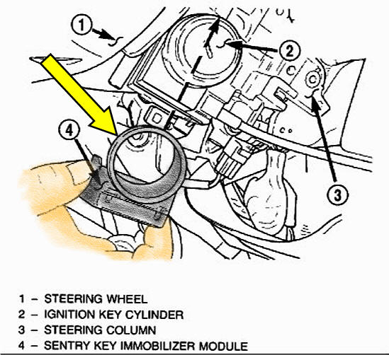 - Place the SKIM (Sentry Key Immobilizer Module) and re-engage the antenna ring around the ignition lock cylinder housing.