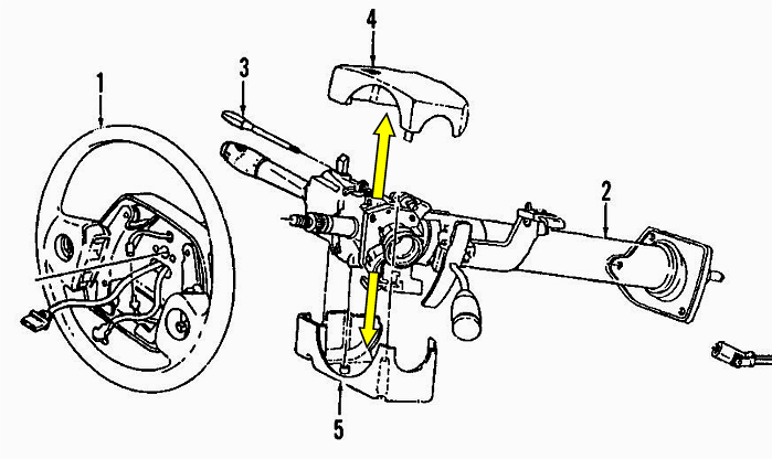 - From below the steering column, remove the two outboard screws that secure the upper column shroud to the lower shroud.