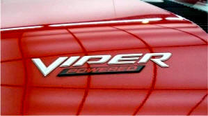 Dodge RAM SRT-10 “Viper-Powered” raised emblem for the side of the raised hood. The factory emblem is discontinued, but this is a high-quality facsimile of the original with an identical size and 95% similarity in close-up appearance. Simply peel and stick for installation.