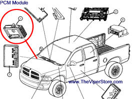 Note: The RAM SRT-10 PCM is located on the passenger-side inner fender.