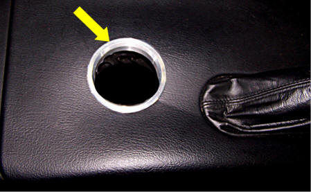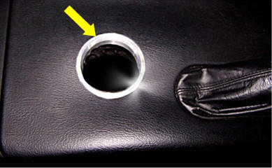 NOTE: If the hole is too small, use a file or coarse sandpaper to slightly enlarge the opening. If the hole is too large, use a 3-inch beauty ring (washer) around the cup holder for a proper fit.