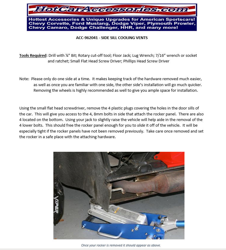 All Viper owners know how hot the sills and cabin can get with exhaust running through the rocker panels. These vents are easy to mount and will last the life of your car. They allow cool air in while the hot air moves to the rear of the rockers and is blown out.