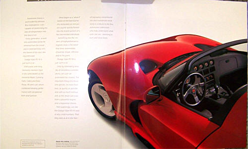 Beautiful Dodge Viper 1992 Official Sales Book. Includes the history of how the Viper was developed. These were distributed sparingly and are no longer in print. This is a brand-new book with glossy, large, cardboard pages featuring stunning photos.
