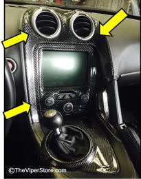 Center radio bezel in pure hand-laid carbon fiber. One piece. Center radio bezel sold separately.
