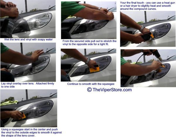 Included: 2 headlight lens vinyl tints, 1 small felt squeegee