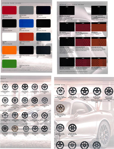Full-color brochure showing all the paint, wheel, and fabric options for the 2017 Viper.
