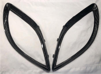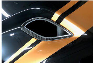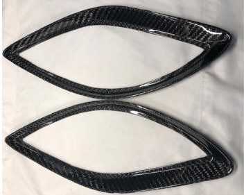 Hood vent bezel trims designed for the rough hood vent openings, made of pure carbon fiber.