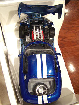 Although this model says “1996” on the box, it represents all Viper Generation 2 GTS (1996–2002) vehicles, which share the same body style. Comes in Blue with White Stripes or Viper Red.