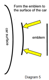 - Use the included pink scraper to carefully pry beneath the old emblem (Diagram 2). The tool should remove it easily without scratching your paint.