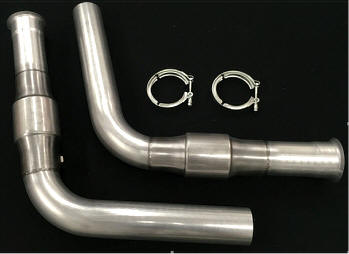 Standard mid pipes with cats only, hardware, and instructions. Connects to the factory manifold. Kit includes mid pipes with cats only, hardware, and instructions. Must specify size.