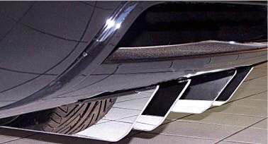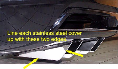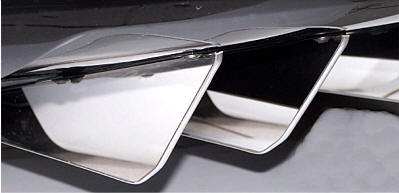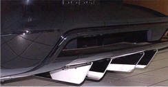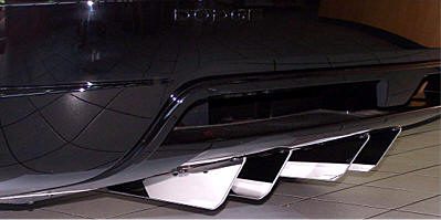 Heavy-duty, high-polished stainless steel — looks just like chrome. This heavy-duty 8-piece set (two covers for each side of each diffuser fin) covers the rear four diffusers, or “fins,” at the bottom of your 2003–2008 Viper.