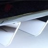 - Once you are satisfied with the placement, remove the red liner from the attachment tape of the first stainless steel fin cover. Carefully position the piece so that the bottom is even and flush with the black fin attached to the car. Press firmly over the entire surface to secure it. Repeat this process for the opposite side of the fin.