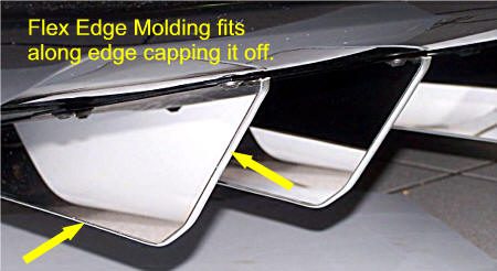 - You have been provided with four chrome molding strips. This molding is used to close the gap between the two covers of each fin, acting as an edge cap. Place the strip into position, pulling the red release liner as you press the flex trim firmly along the fin edge between the two stainless pieces. Work from one end to the other until the gap is fully covered. Repeat this for the remaining fins. You may need to slightly stretch or trim the flex molding for a perfect fit.
