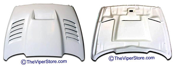 Fiberglass Hood – comes unpainted. Includes the fiberglass hood with a 2.5″ raised center air scoop, about 1.25″ higher than the stock hood for a dramatic racing look. Fits all Dodge RAM 1500 (2004–2006) as well as Dodge RAM SRT10. The fiberglass hood is ready to be prepped and painted.