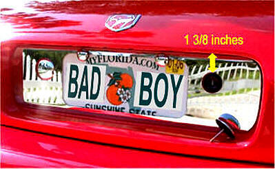 For the years 2001-2002, the red arrow distance should be 1 3/8 inches from the top of the license plate well to the top of the keyhole.